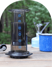 Aeropress is my go-to brew method for camping. It's a compact setup with minimal waste, so it's easy to pack out with you. My partner and I brought ours for a week-long camping adventure in Iceland and were able to enjoy consistently delicious coffee every morning of our trip.