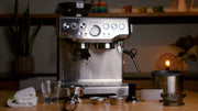Insert the portafilter and position your cup on the driptray. Hit the brew button to begin your extraction.